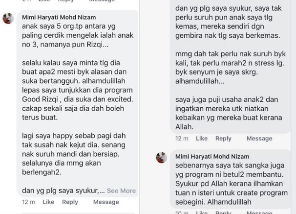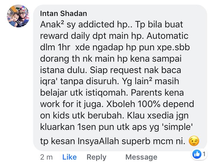 Alhamdulillah. Anak beliau jadi lebih bersemangat untuk hafaz Al Quran tanpa disuruh.