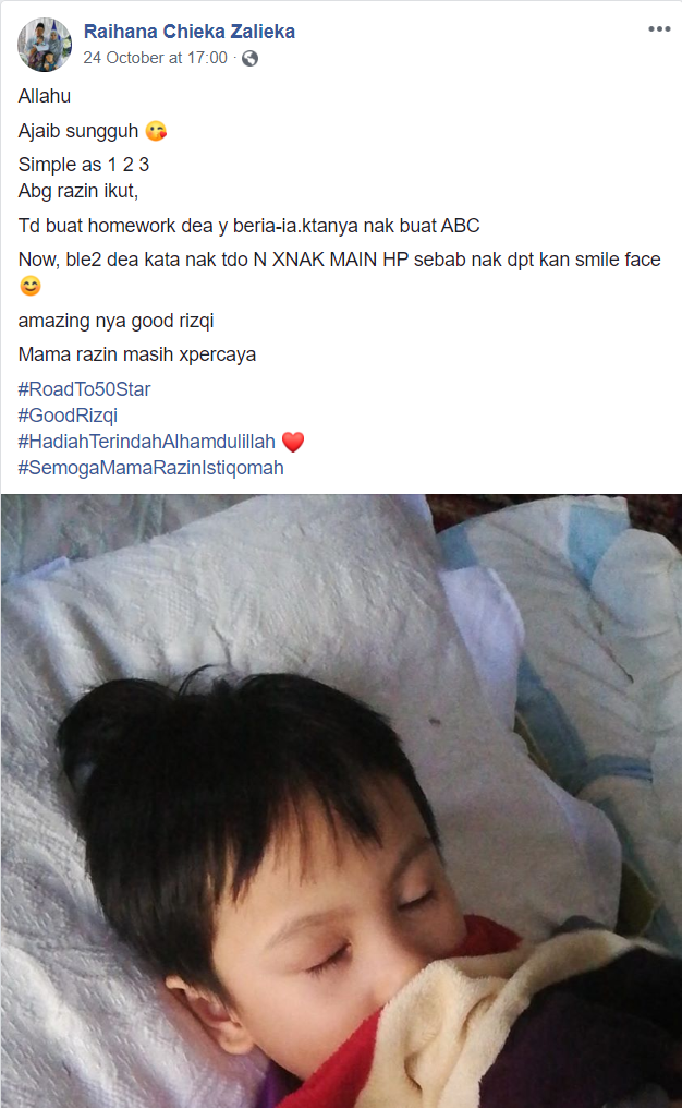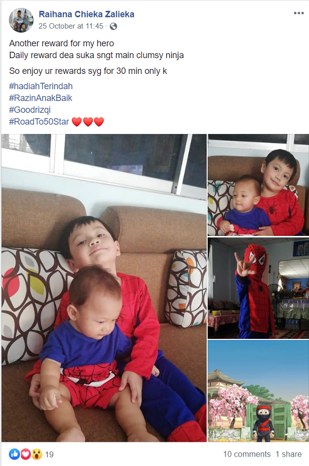 Kanak-kanak biasanya mudah terpengaruh dengan apa yang rakan sebaya dia buat. Bila dia nampak rakan-rakan dia dapat Stars, dia akan turut terpengaruh untuk turut serta kejar Stars dia.