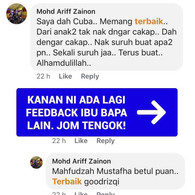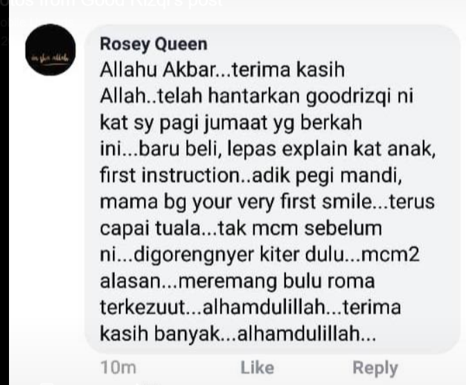 Hampir setiap hari kami ada terima pelbagai feedback dari ibu bapa yang menggunakan Good Rizqi.