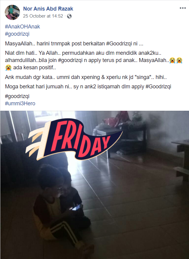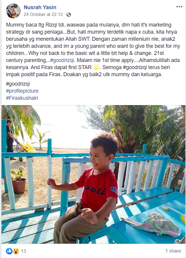Good Rizqi ni hanyalah satu 'tool' saja, tapi kunci sebenarnya ada pada anda sebagai ibu bapa.