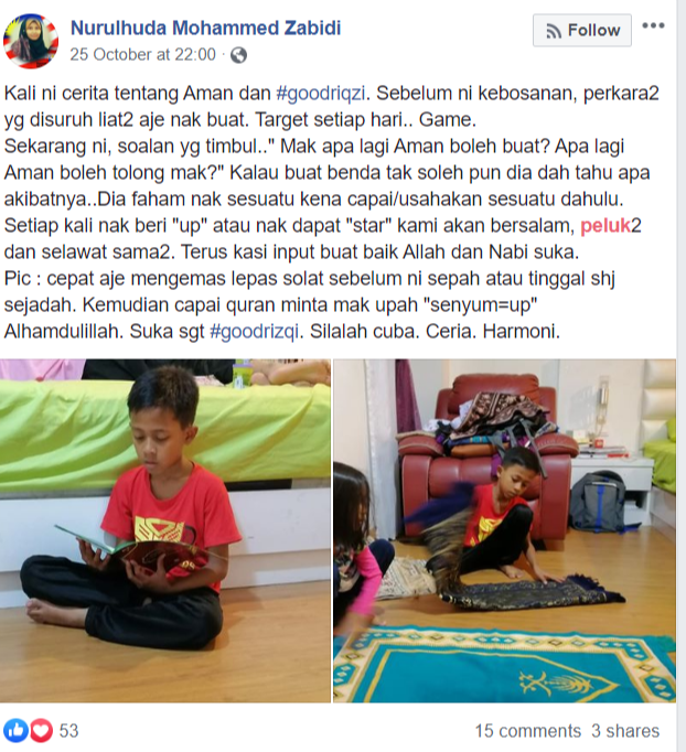 InsyaAllah anak akan jadi lebih rajin untuk solat.