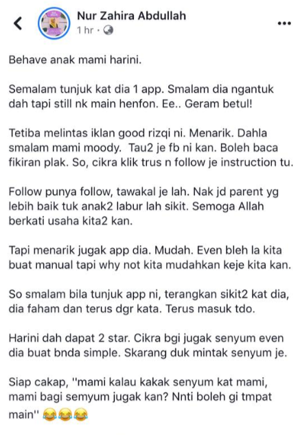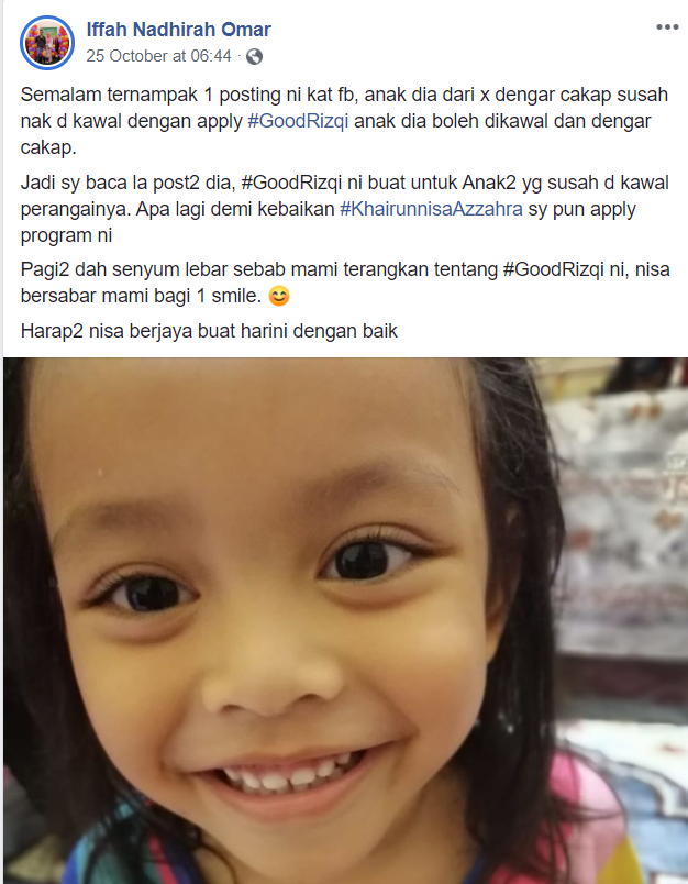 "Kaedah ni asalnya hanya untuk kami gunakan untuk anak kami je, Rizqi Nur Iman.