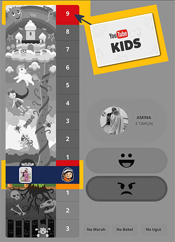 Dalam contoh ni, Amina dapat tengok Youtube Kids selama 30 minit.