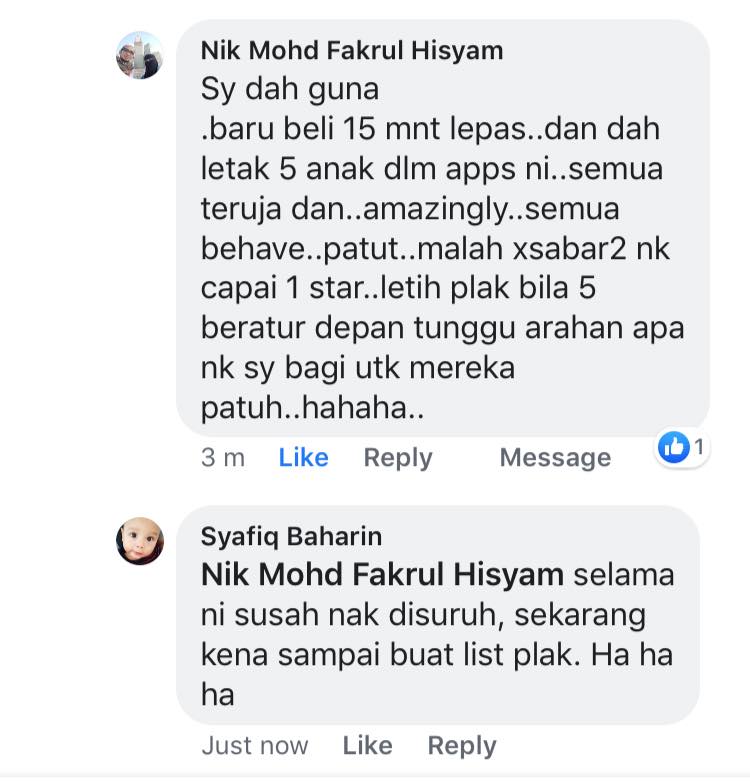 Anak insyaAllah akan lagi cepat buat sesuatu kerja.
