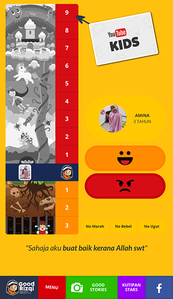 Good Rizqi boleh dijadikan satu platform untuk kita mengajar anak kita satu simulasi seakan 'Pahala' & 'Dosa'.